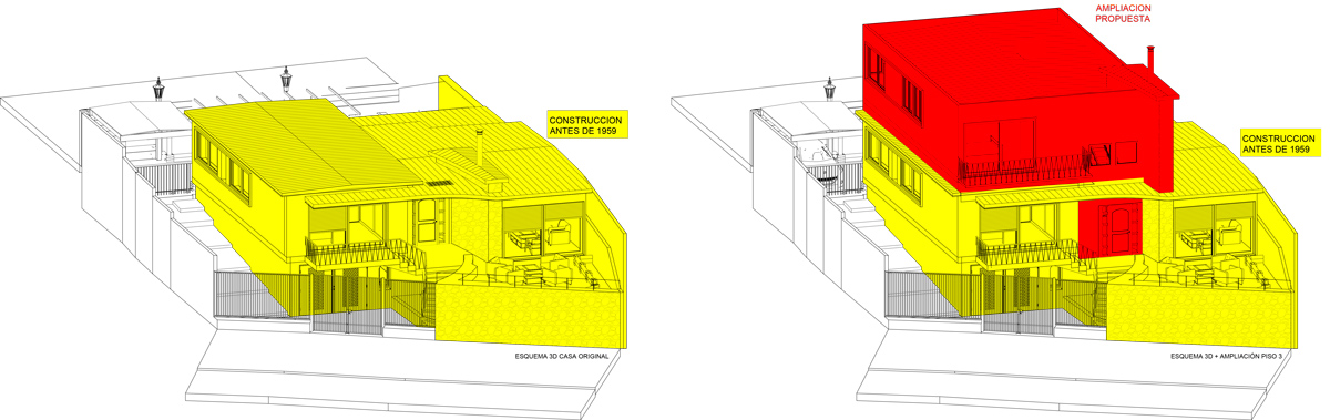 Ampliación del tercer piso en vivienda original de 1959, diseñada por Schapira & Eskenazi arquitectos. Se replica sistema constructivo y lenguaje arquitectónico. Se regulariza la propiedad existente y se obtiene permiso de ampliación.