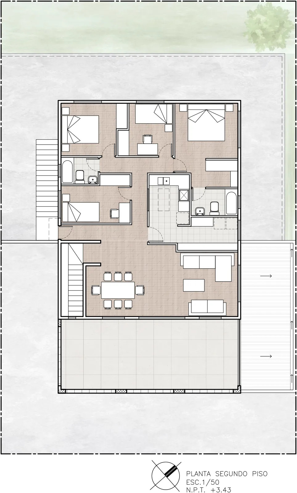 Ampliación de vivienda en condominio, basada en el análisis estructural y la posibilidad de homologar una de las tipologías existentes de mayor tamaño. Se replica el sistema constructivo original para lograr una integración armónica con el entorno.
